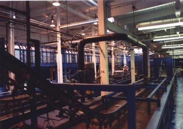 Overhead conveyor systems are generally used to convey parts for washing, pre-treatment, paint/powder application and curing.